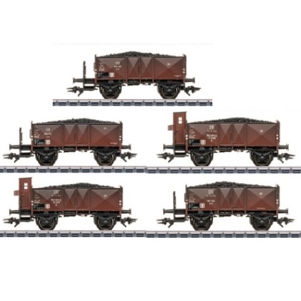 Passend zum Angebot des Faller Stahlwerkes bringen diese fünf Kohlewagen die Kohle zum Stahlwerk.
