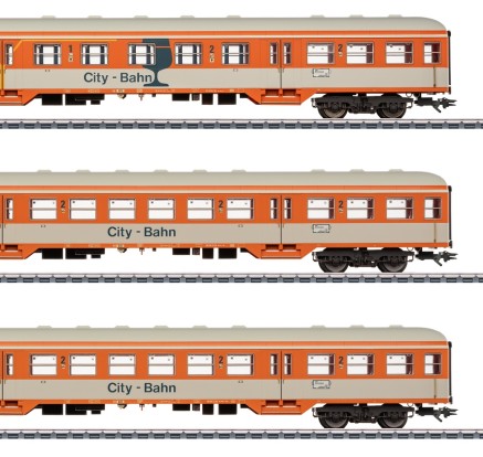 Passend zur BR 218 erscheint ein Wagenset aus drei Mitteleinstiegswagen im City Bahn Design. Außerdem ein Steuerwagen mit Karlsruher Kopf (43833) und ein Expressdienst-Gepäckwagen (42831). Alle Wagen besitzen Innenbeleuchtung und stromführende Kupplungen.
